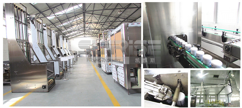 全自動(dòng)塑料蓋高速壓蓋機(jī)(八寶粥、奶粉、龜苓膏等) 我公司生產(chǎn)的全自動(dòng)壓蓋機(jī)由壓蓋與理蓋兩部分組成,可自由調(diào)整安裝位置。采用單道進(jìn)出罐,可方便與各種輸送機(jī)實(shí)現(xiàn)對(duì)接。該機(jī)氣電控制部分采用PLC可編程控制器***控制,電機(jī)采用變頻調(diào)速,各重要工位均安裝檢測(cè)開(kāi)關(guān),整機(jī)控制靈活簡(jiǎn)單,準(zhǔn)確可靠,壓蓋成品率可達(dá)99%以上。 A.主要技術(shù)參數(shù) 1.生產(chǎn)能力:300-400罐/分鐘 2.總功率:3kw 3.總重量:800kg 4.動(dòng)力電源:3X380VX50Hz 5.控制電源:DC24V/AC24V 6.壓縮空氣源:0.8Mpa 7.耗氣量:1.6m3/min 8.外形尺寸:壓蓋部分1270mm×870mm×1800mm 理蓋部分1230mm×1000mm×3100mm B.主要結(jié)構(gòu)及特點(diǎn) 1.本機(jī)主體采用SUS304不銹鋼材質(zhì),外觀精美,經(jīng)久耐用。 2.本機(jī)理蓋器網(wǎng)帶導(dǎo)向及固定機(jī)構(gòu)均為我公司自主設(shè)計(jì),網(wǎng)帶邊緣與壓板接觸面積大,網(wǎng)帶運(yùn)行順暢平穩(wěn),有效防止網(wǎng)帶跳帶。刮板部分與主機(jī)襯板貼合緊密,有效提高掛蓋率。整體出蓋率高,速度快,性能可靠。 3.滑道部分采用專利設(shè)計(jì),滑道側(cè)板為SUS304不銹鋼板材,滑道主體采用φ5圓鋼,材質(zhì)為SUS304不銹鋼。減小蓋體行進(jìn)阻力,杜絕卡蓋擠蓋現(xiàn)象。滑道設(shè)計(jì)有固定加強(qiáng)板,提高滑道剛性,不易變形,并加有可調(diào)節(jié)裝置,更好適應(yīng)蓋體尺 4.本機(jī)所有與罐體接觸部位均為超高分子聚乙烯、尼龍、橡膠、聚氨酯等軟材料,有效防止罐體劃傷。 5.本機(jī)智能化程度高,配有多點(diǎn)檢測(cè)裝置,確保主機(jī)在無(wú)蓋、堵蓋、無(wú)罐、倒罐、堵罐等情況下及時(shí)停機(jī),保證主機(jī)動(dòng)作準(zhǔn)確穩(wěn)定,提高設(shè)備穩(wěn)定性;恢復(fù)正常后,主機(jī)自動(dòng)啟動(dòng),提高自動(dòng)化水平。 6.主機(jī)動(dòng)力部分電機(jī)采用變頻控制技術(shù),控制動(dòng)作***,壓蓋傳動(dòng)部分采用同步聯(lián)動(dòng)方式,壓蓋成功率高。 7.主機(jī)壓蓋裝置高度可調(diào)節(jié),可滿足不同罐型的壓蓋需求。 8.本機(jī)所有氣動(dòng)元件均采用國(guó)內(nèi)知名品牌,壽命長(zhǎng),性能可靠。 9.整機(jī)采用西門(mén)子PLC自動(dòng)控制,電機(jī)采用臺(tái)灣臺(tái)達(dá)變頻器調(diào)速,所用檢測(cè)開(kāi)關(guān)均采用進(jìn)口奧托尼克斯品牌。整機(jī)自動(dòng)化程度高,速度快,性能穩(wěn)定。